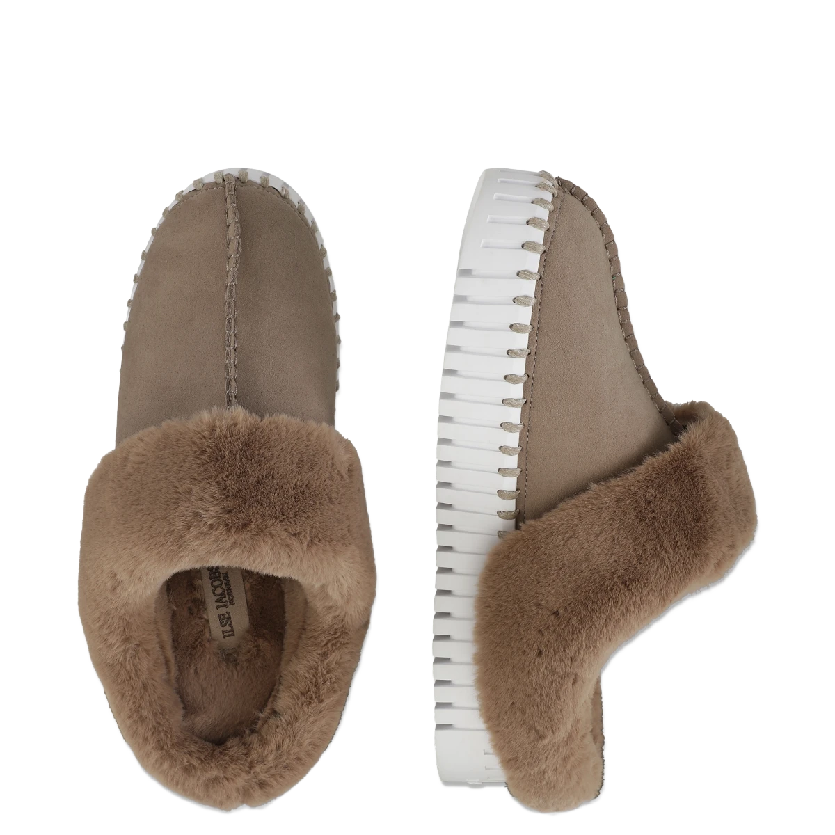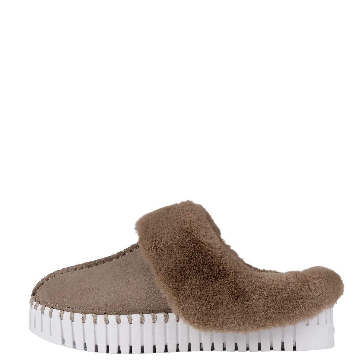 These slippers will add a stylish look to your loungewear ensemble. The upper is made of recycled microfiber and lined with super-soft faux fur. The upper is attached to the outsole using no glue, only recycled thread.