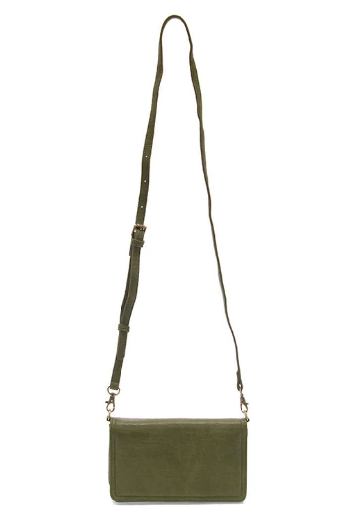 Luscious buffalo grain vegan leather in rich shades, give this compact bag a casual feel. With the convenient rear phone pocket, built in credit card pockets and multi compartments inside you will have space for everything you need to carry. Easily go from day to night with the detachable wrist strap and shoulder strap, you can carry as a cross body, a clutch, or a wristlet.