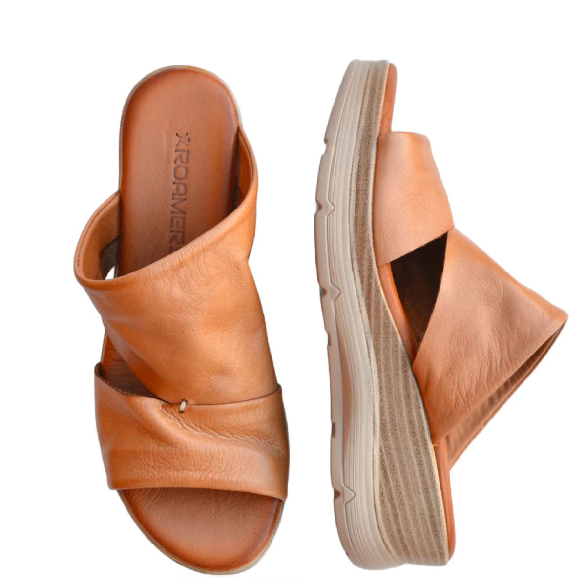 Incredibly supple leather slide with a small wedge makes this the perfect sandal for casual or dress.