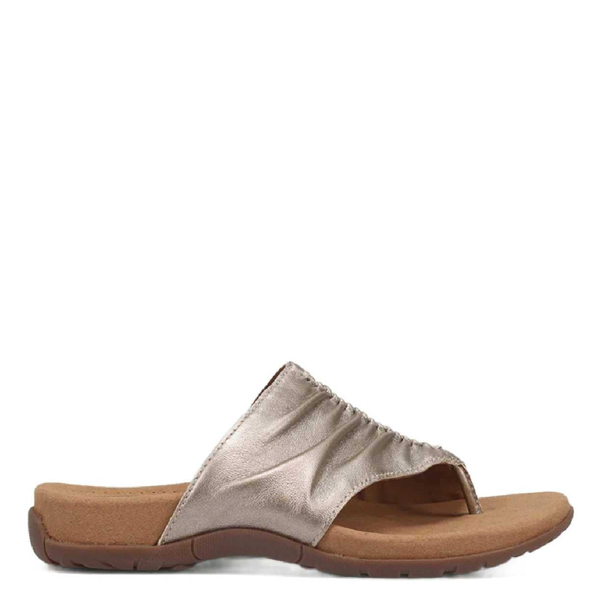 This is the gift that keeps on giving. Sumptuous leather with hand-stitched scrunch pleating makes Gift 2 the ideal sandal for times when you want a little more coverage. Taos Soft Support™ features our premium footbed with arch and metatarsal support and Cool Recovery Foam®.